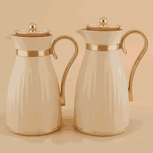 طقم ترامس شهد السيف غاليري، 1 / 1 لتر، قطعتين، حافظة داخلية زجاج حراري، هيكل خارجي استيل - لؤلؤي بذهبي