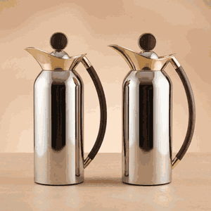 طقم ترامس اليمامة السيف غاليري، 2 قطعة، 0.7/ 1 لتر، خامة داخلية زجاج، يد خشبي، غطاء ضغاط - فضي