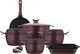 طقم قدور جرانيت تيتانيوم نيوكلاين، 10 قطع، غطاء زجاج - احمر غامق