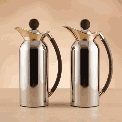 طقم ترامس الثريا السيف غاليري، قطعتين، 1/1 لتر، خامة داخلية زجاج، يد اسود، غطاء ضغاط - فضي ذهبي