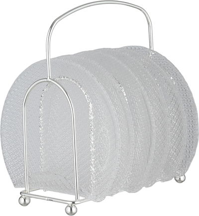 طقم صحون زجاج السيف غاليري، 6 قطع، مع ستاند، منقوش - فضي شفاف