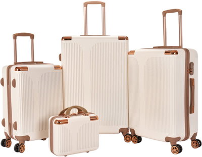 طقم شنط سفر ABS ليمرا، 4 مقاسات، 4 عجلات، بزاوية 360 درجة، OT-501861 - بيج ذهبي