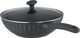 Robust aluminum frying pan, 28 cm, plastic handle, glass lid, Teflon interior - dark gray
