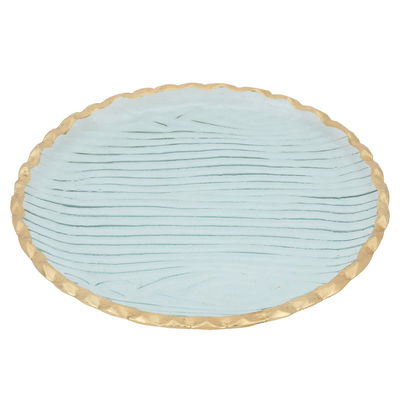 Al Saif Gallery glass plate, 1.6 x 21 cm, round with gold rim, small - transparent