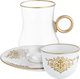 طقم تقديم شاي وقهوة زجاج وبورسلان السيف غاليري، 24 قطعة، مزخرف - ابيض شفاف