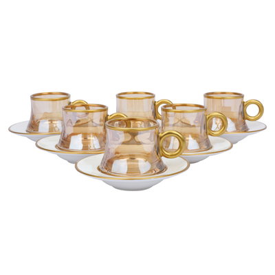 طقم فناجين قهوة زجاج السيف غاليري، صحن، 12 قطعة - شفاف بني