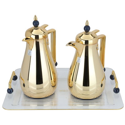 طقم ترامس زجاج حراري مع طوفرية السيف غاليري، 0.75 / 1 لتر، 3 قطع - ذهبي فضي