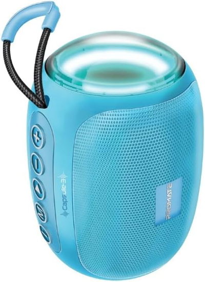 مكبر صوت لاسلكي محمول سليكون(بروميت)، 5 واط، أضواء LED، بمدخل AUX مقاس 3.5 ملم، USB، وفتحة بطاقة TF لايفون 15 وجالكسي S23 - أزرق