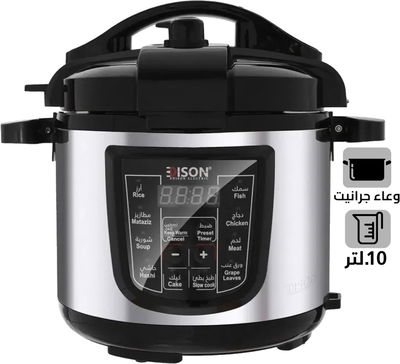 قدر ضغط كهربائي إديسون برو، وعاء داخلي جرانيت، 1400 واط، 10 لتر، 10 وظائف طبخ، GT1009-W - فضي اسود