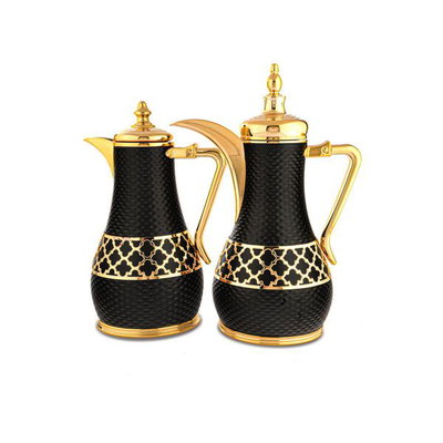 Al Saif Gallery Al Anoud thermos set, 1/1 liter, 2 pieces, thermal glass inner shell, stainless steel outer shell - black gold