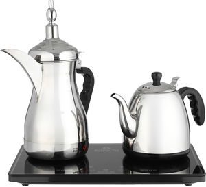 آلة تحضير القهوة والشاي كهربائية دلة الخليج، 1600 واط، 1/1 لتر، شاشة رقمي، تحكم باللمس، SH-7407 - أسود فضي