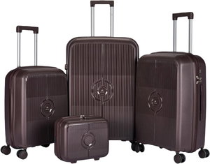 طقم شنط سفر جلد صناعي ليمرا، 4 مقاسات، 4 عجلات، زاويه 360 درجة، LMA-17810 - بيج بني فاتح