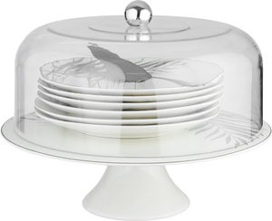 طقم تقديم بيالات شاي زجاج وفناجين قهوة مع صحون بورسلان السيف غاليري، مشجر فضي، 18 قطعة - ابيض شفاف
