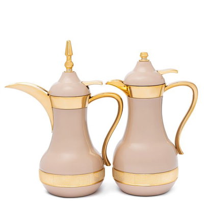 طقم ترامس آصال السيف غاليري، 1 / 0.7 لتر، 2 قطعة، حافظة داخلية زجاج حراري، هيكل خارجي ستاينلس استيل - بيج ذهبي
