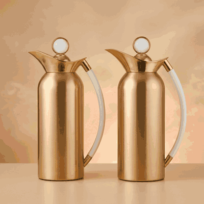 طقم ترامس الثريا السيف غاليري، قطعتين، 1/1 لتر، خامة داخلية زجاج، يد شفاف، غطاء ضغاط - ذهبي