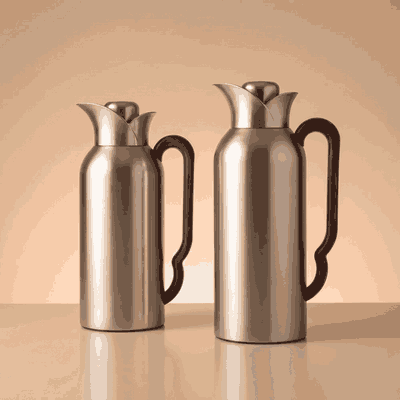 طقم ترامس طويق السيف غاليري، 2 قطعة، 0.7/ 1 لتر، خامة داخلية زجاج، يد خشبي، غطاء ضغاط - فضي