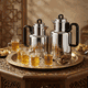 طقم ترامس رونق السيف غاليري، 1/1.5 لتر، 21 قطعة، بيالات مع صحون، فناجين قهوة، طوفرية، يد اسود - فضي
