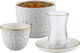 طقم تقديم بيالات شاي و فناجين قهوة مع صحون بورسلان السيف غاليري، مبخرة، 26 قطعة، نقش اسلامي - ابيض