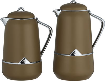 طقم ترامس لالوزا، قطعتين، 0.7 / 1 لتر، حافظة داخلية زجاج، يد فضي، غطاء ضغاط - زيتي فضي