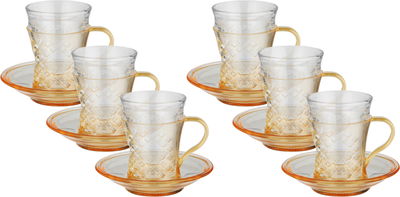 طقم بيالات مارية زجاج سيف بلص، 12 قطع - شفاف برتقالي