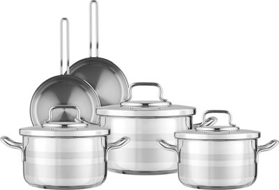 طقم قدور ستانلس ستيل استرون كوركماز، 8 قطع - فضي
