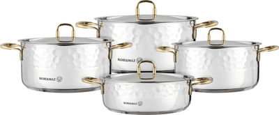 طقم قدور ستانلس ستيل ايرنا 2كوركماز، 8 قطعة - فضي ذهبي
