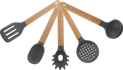 طقم ادوات مطبخ خشب سيلكون السيف غاليري، 5 قطع، يد خشبي - خشبي فاتح رمادي غامق