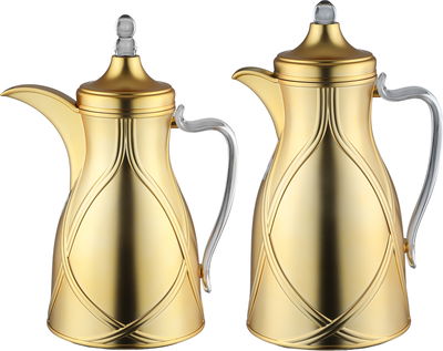 طقم ترامس طيف السيف غاليري، 0.7 / 1 لتر، 2 قطعة، خامة داخلية زجاج، يد شفاف، غطاء ضغاط - ذهبي مطفي