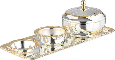 طقم تمرية ستانلس استيل السيف غاليري، 34x15x1.4 سم، 4 قطع، طوفرية، صحن نوا، صحن تغميسة - فضي ذهبي