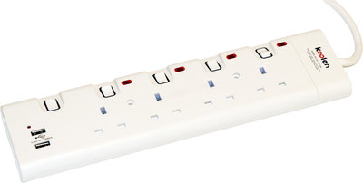 توصيلة كهرباء كولن، 5 متر، 4 مخارج، 2 يو اس بي ، 301100008 - ابيض