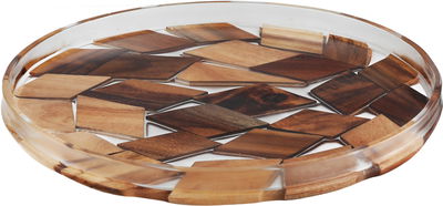 صحن تقديم اكريلك السيف غاليري، 25x25x2.3 سم، دائري - خشبي فاتح