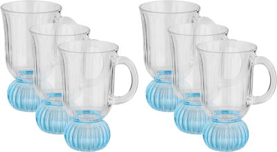طقم أكواب زجاج السيف غاليري، 6 قطع، قاعدة أزرق، مسكة يد - شفاف أزرق