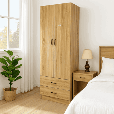 خزانة ملابس خشب ام دي اف، 180×60×47 سم، 2 باب، 2 درج - بني