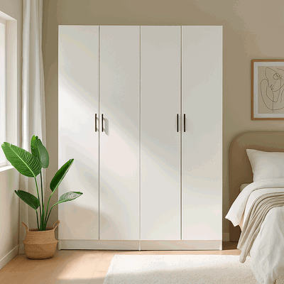 خزانة ملابس خشب ام دي اف، 190×150×50 سم، 4 ابواب - أبيض