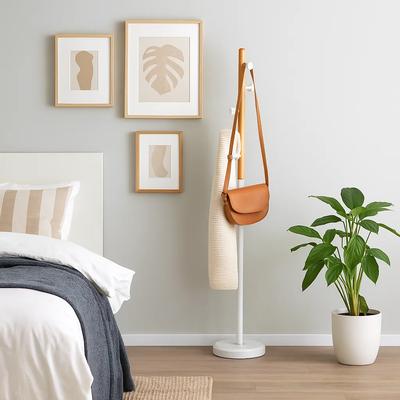 علاقة ملابس مودرن معدن، ارتفاع 185 سم - ابيض خشب ام دي افي