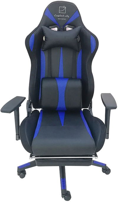 كرسي ألعاب جلد صناعي باك كومفورت، 66×110×135 سم، ليد، سماعات بلوتوث مدمج - ازرق اسود
