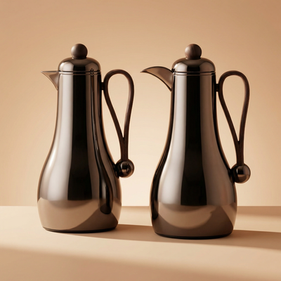 طقم ترامس غيم السيف غاليري، قطعتين، 1/1 لتر، حافظة داخلية زجاج، يد خشبي - اسود لامع