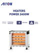 دفاية كهربائية ارو، 2400 واط، 4 شمعة، 4 عجلات، RO-CP2600H - ابيض