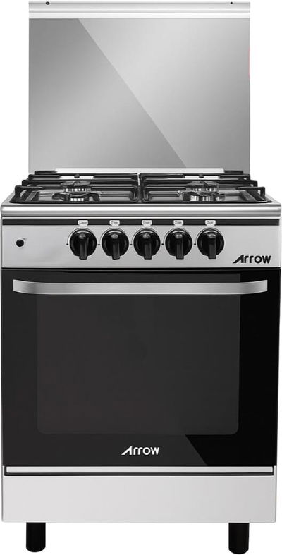 فرن غاز ارو، 55×55 سم، 4 شعلات، RO-5555GSF - فضي اسود