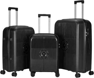 طقم شنط سفر بولي بروبيلين ليمرا، 3 مقاسات، 4 عجلات، بزاوية 360 درجة، LMA-PP531-3PCS - أسود
