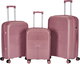 طقم شنط سفر بولي بروبيلين ليمرا، 3 مقاسات، 4 عجلات، بزاوية 360 درجة، LMA-PP527-3PCS - روزجولد