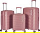 طقم شنط سفر بولي بروبيلين ليمرا، 3 مقاسات، 4 عجلات، بزاوية 360 درجة، LMA-PP503-3PCS - روزجولد