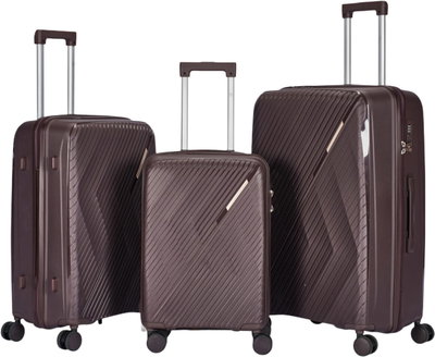 طقم شنط سفر بولي بروبيلين ليمرا، 3 مقاسات، 4 عجلات، بزاوية 360 درجة، LMA-PP520 - بني