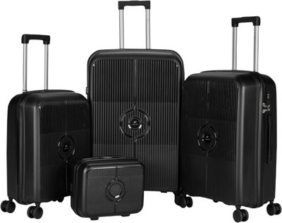 طقم شنط سفر بولي بروبيلين ليمرا، 4 مقاسات، 4 عجلات، بزاوية 360 درجة، LMA-PP531 - أسود