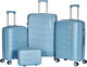 طقم شنط سفر بولي بروبيلين ليمرا، 4 مقاسات، 4 عجلات، بزاوية 360 درجة، LMA-PP507 - ازرق