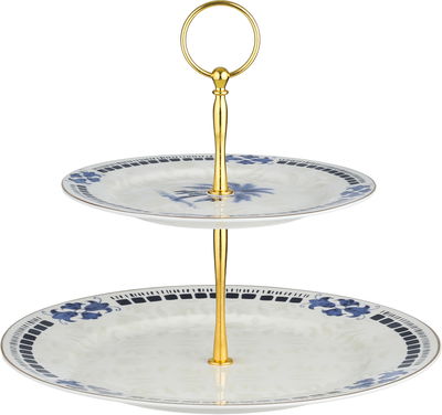 ستاند تقديم بورسلان السيف غاليري، 2 دور، دائري، مسكة يد استيل - أبيض أزرق