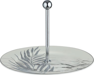 شيالة تقديم بورسلان السيف غاليري، 19.5x19.5x14 سم، دائري، مسكة يد استيل - أبيض رمادي