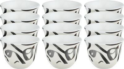 طقم فناجين قهوة سعودي بورسلان السيف غاليري، 12 قطعة - أبيض فضي