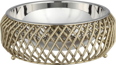 وعاء تقديم ستانلس استيل السيف غاليري، 23x23x10 سم، دائري عميق، قاعدة - فضي ذهبي