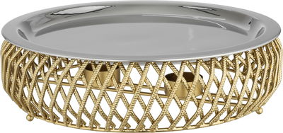 صحن تقديم ستانلس استيل السيف غاليري، 32x32x10 سم، دائري مسطح، قاعدة - فضي ذهبي